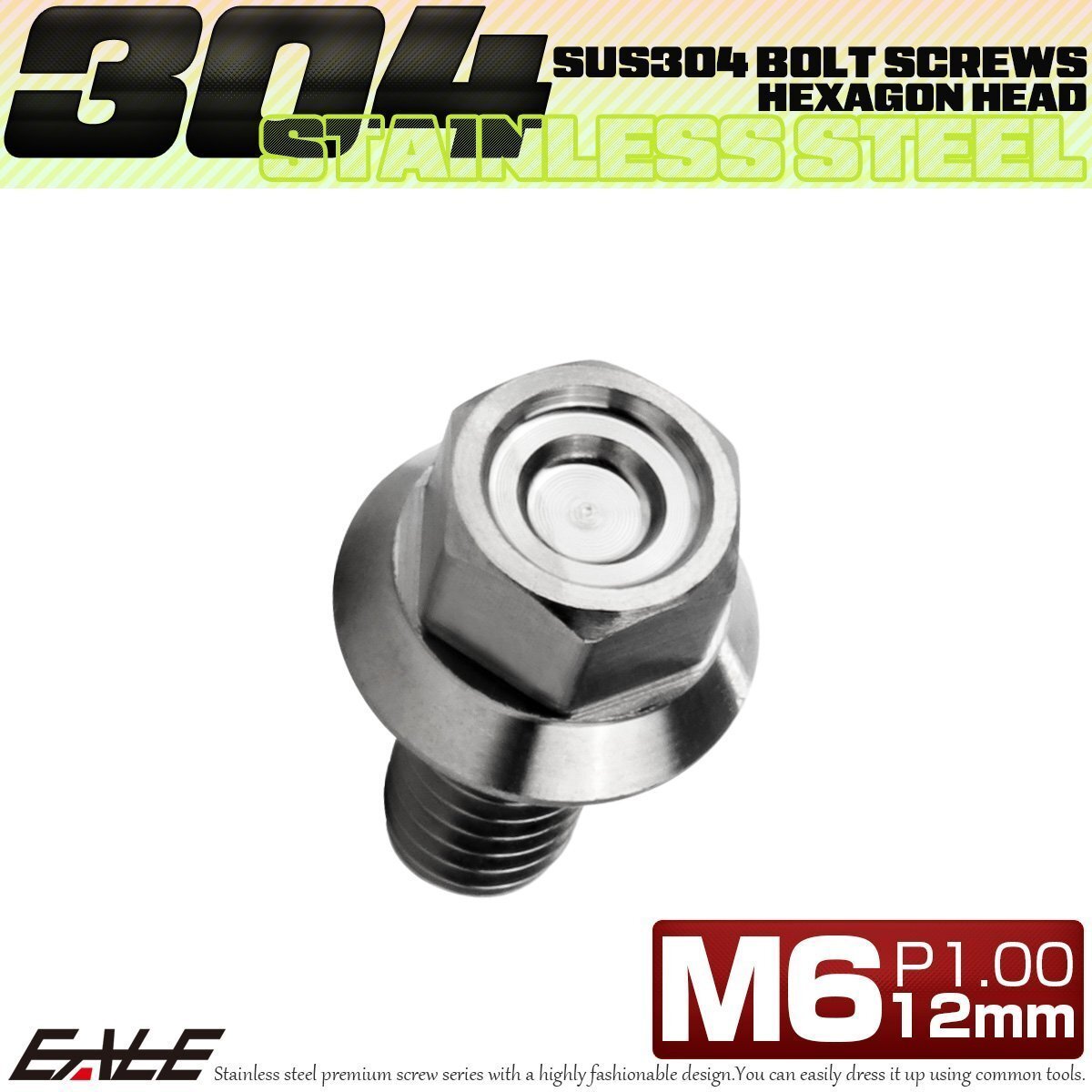 - M6×12mm P1.00 フランジ付き 六角ボルト カスタムヘッド SUS304 ステンレス シルバー TB1247