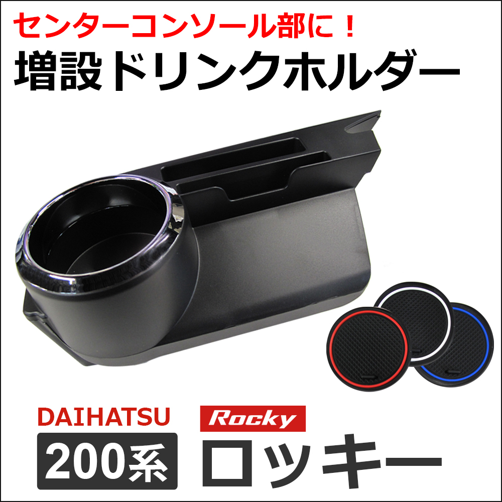 > 【互換品】増設 ドリンクホルダー / ダイハツ 200系 ロッキー用 / カップホルダー / ラバーマット3枚付き