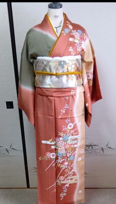 - 訪問着(袋帯つき)「永遠」を表すエ霞文様 花文 暈し染め 金彩 フォーマル お嫁にいかれるお嬢様 未使用 しつけつき