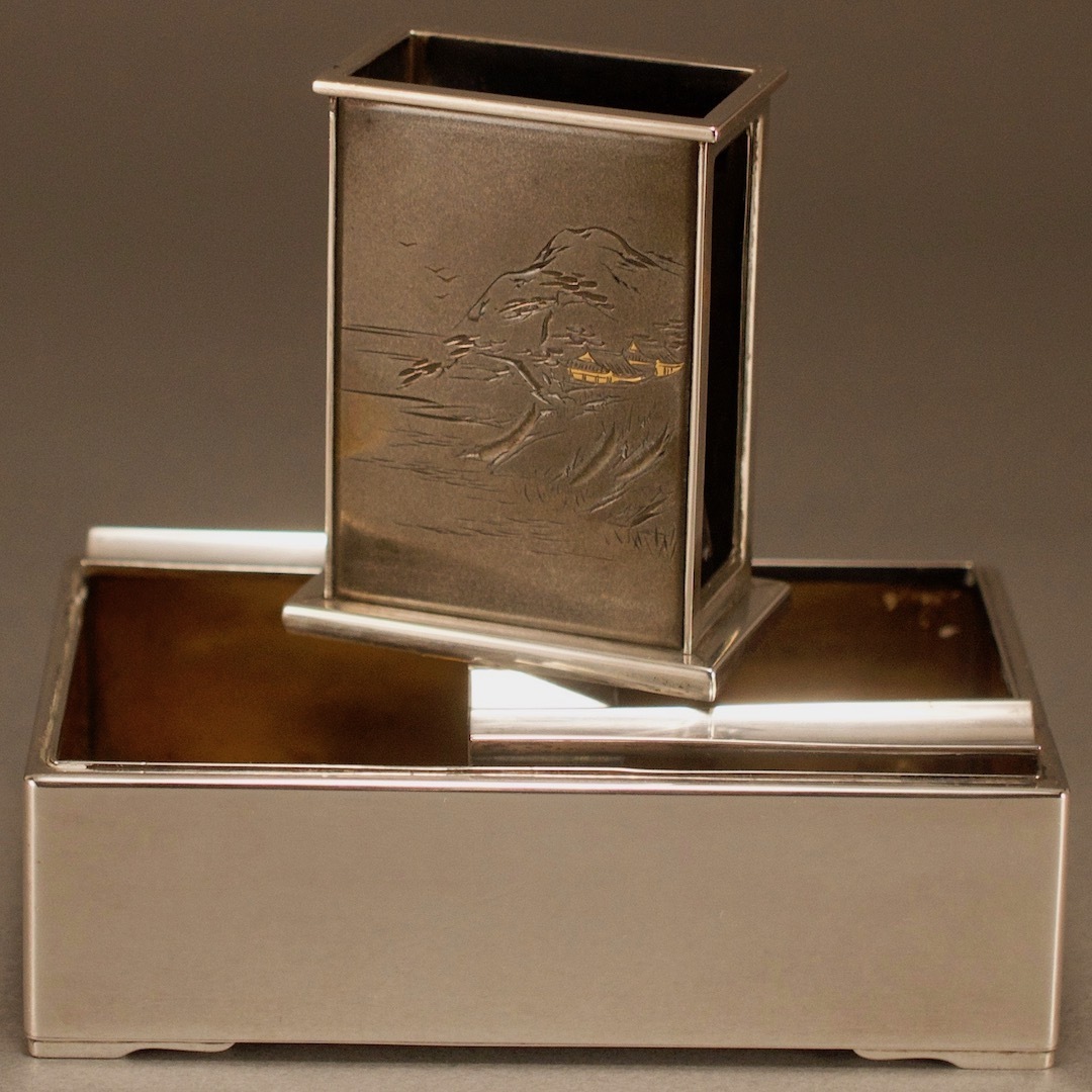 - 尚美堂 マッチ入れ付きの銀製の灰皿 「純銀」刻印あり