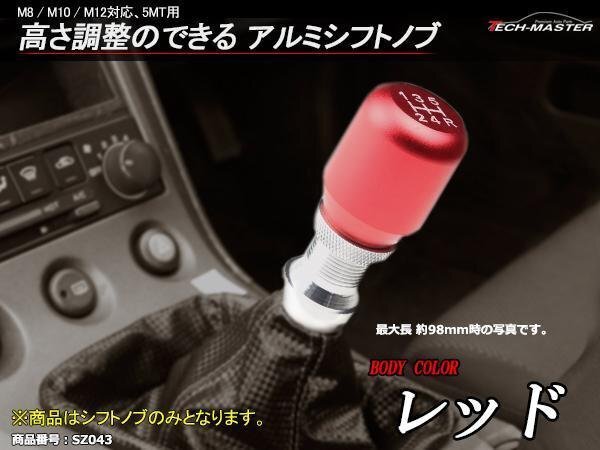 - 高さ調整可 5MT汎用 アルミシフトノブ M8/M10/M12 レッド SZ043