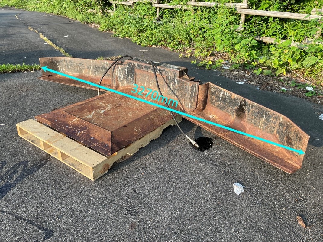 - 【福島】 フォークリフト 油圧 ウイングバケット 左右開閉 サイドオープン 油圧開閉 ピン付 除雪 雪かき 引取OK 全国発送可 (OS343)