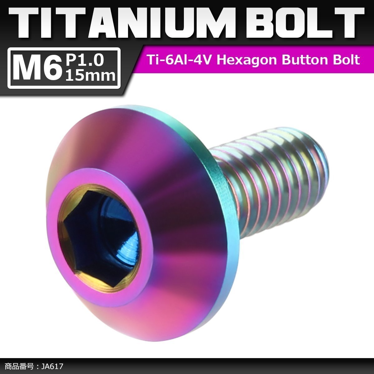 > M6×15mm 1.0 頭部径14mm 64チタン合金 テーパーヘッド 六角穴 ボタンボルト 焼きチタンカラー 虹色 車/バイク 1個 JA617