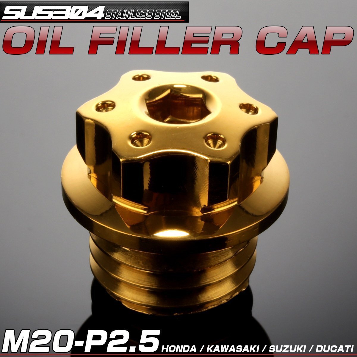 - 汎用 M20 P2.5 オイルフィラーキャップ ゴールド SUS304 ステンレス ホンダ ヤマハ カワサキ ドゥカティ等 TH0264