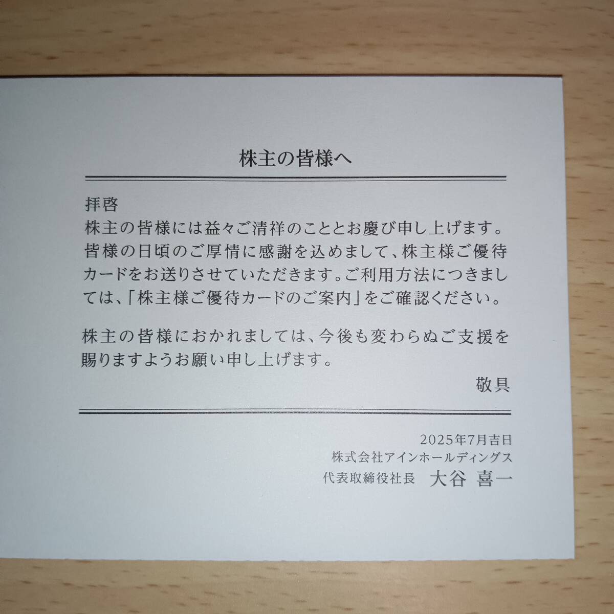 > アインホールディングス 株主優待 株主様ご優待カード 2000円分 有効期限2026/7/31