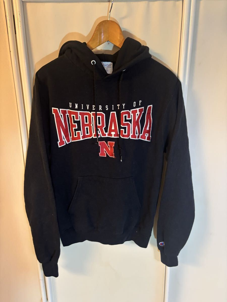 - スエット パーカー ネブラスカ カレッジ系 チャンピオン champion サイズS 黒系 1円スタート アメリカ古着