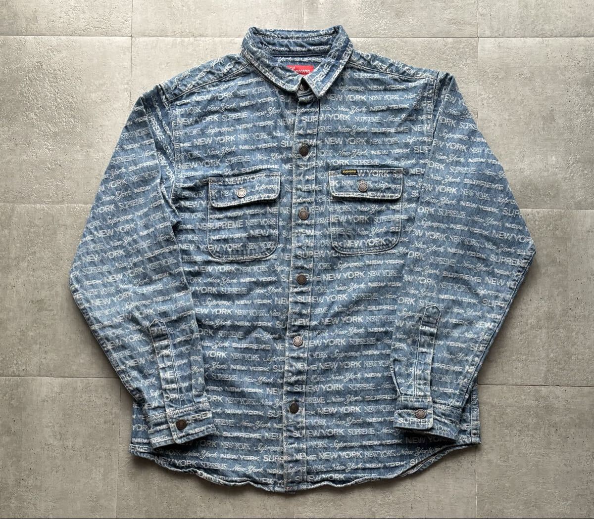 - 22FW Supreme シュプリーム デニムシャツ 総柄 デザイン◎ Mサイズ