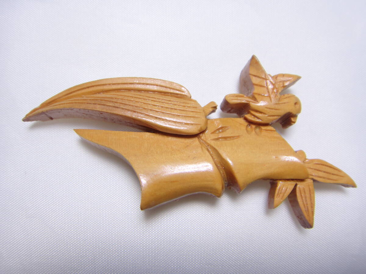 - 帯留め 竹&鳥さん 木製 良品 レトロ ヴィンテージ Y767