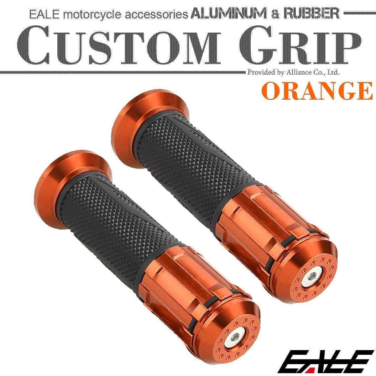 - バイク グリップ ハンドル アルミ ラバー バーエンド付き 22.2mm用 オレンジ 左右セット カスタム ドレスアップ S-245-O