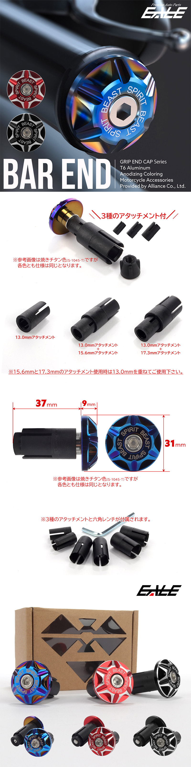- バーエンドキャップ グリップエンド 内径13-20mm対応 アルミ削り出し スリムタイプ 焼きチタン 汎用 S-1045-T