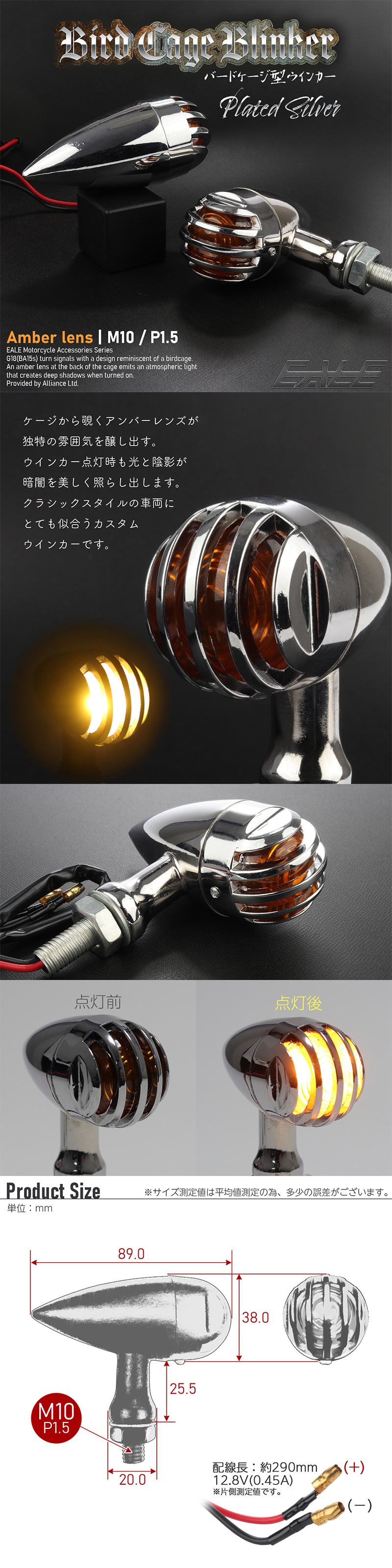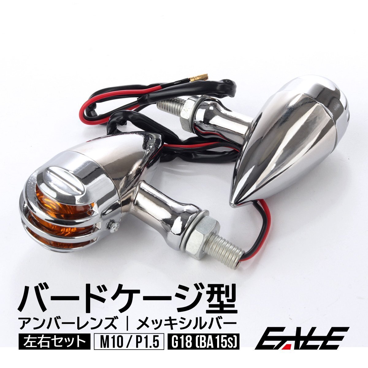 - ウインカー バードケージ型 M10 P1.5 シルバーメッキ BA15s アンバーレンズ DC12V バイク用 左右2個セット F-314-SY