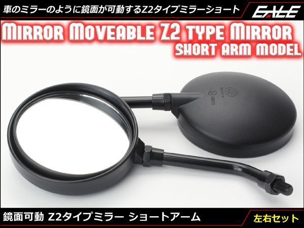 > Z2タイプ ミラー ショート アーム モデル 左右セット M10 正ネジ 凸面鏡 鏡面可動 旧車やネイキッドなどに ブラック S-533