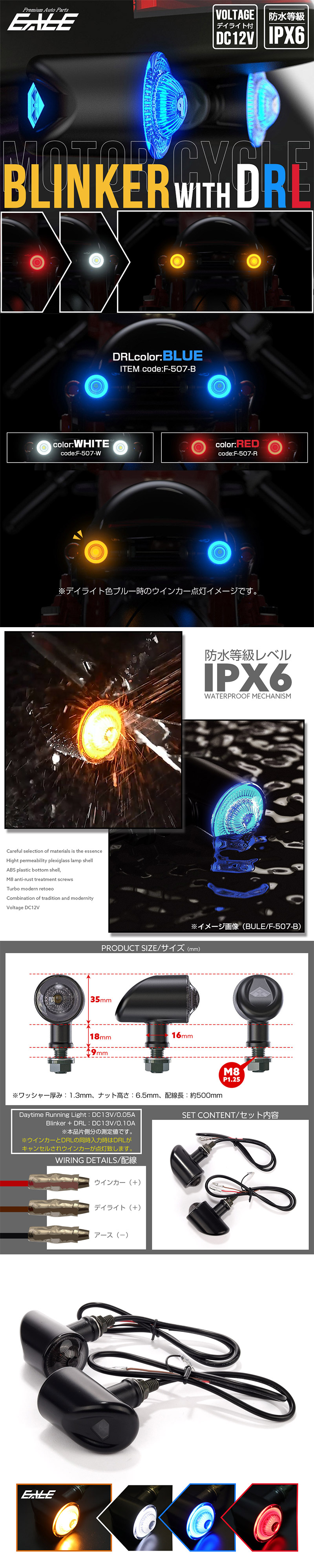 > LED ウインカー デイライト スイッチバック式 レッド クラシックデザイン バイク 汎用 2個セット F-507-R