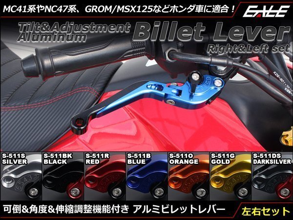 > GROM/MSX125 CBR400R(NC47)/250R(MC41)他 可倒&角度&伸縮 調整機能付 アルミ削り出し ビレット レバー 左右セット ブルー S-511-B
