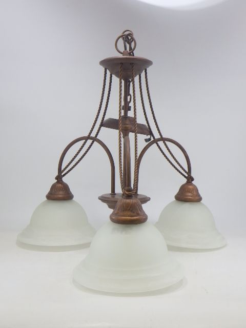 - h5I011Z30 m シャンデリア ガラスシェード 3灯 天井照明 シーリングライト LED アンティーク調 照明器具 ①