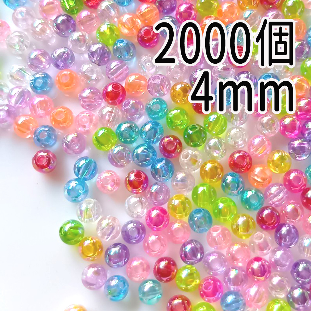 > アクリル ビーズ 4mm 2000個 丸 オーロラ AB加工 クリア カラーミックス 丸型 穴あり 小 樹脂製 混合色