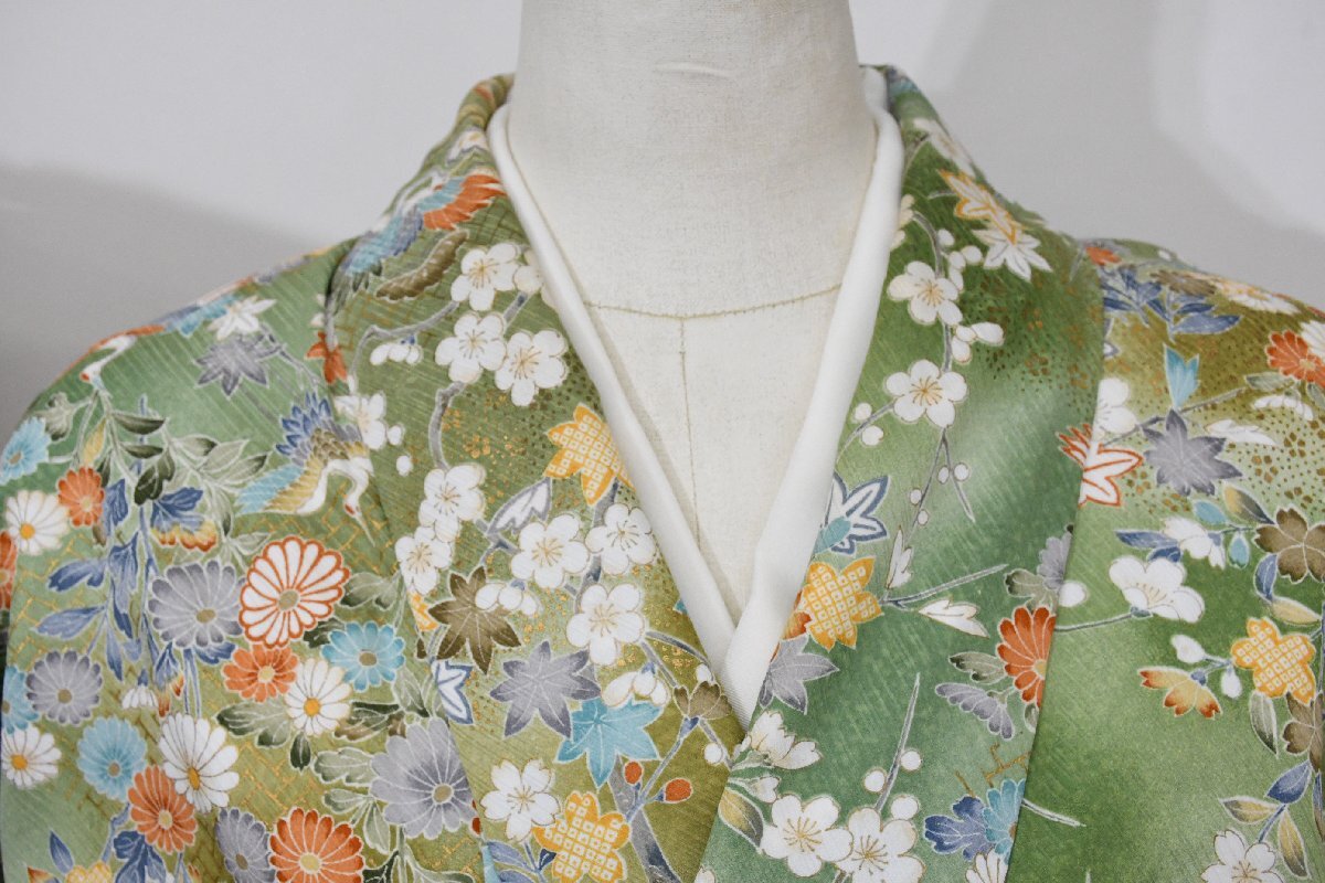 > 小紋 着物 袷 洗える着物 菊 吉祥文様 鶴 松竹梅 身丈163cm 裄丈66.5cm ★ kb-7235 桜庭呉服店