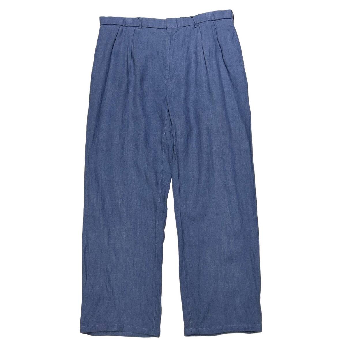 > 希少 リネン【オールド 90s Polo Ralph Lauren ポロ ラルフローレン インプリーツ ツータック パンツ ブルー W38】 USA シルク レーヨン