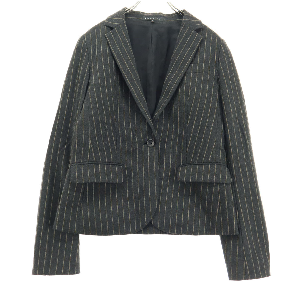 美品 theory セオリー 日本製 ストライプ 長袖 ウールジャケット 2 ブラック レディース拍卖