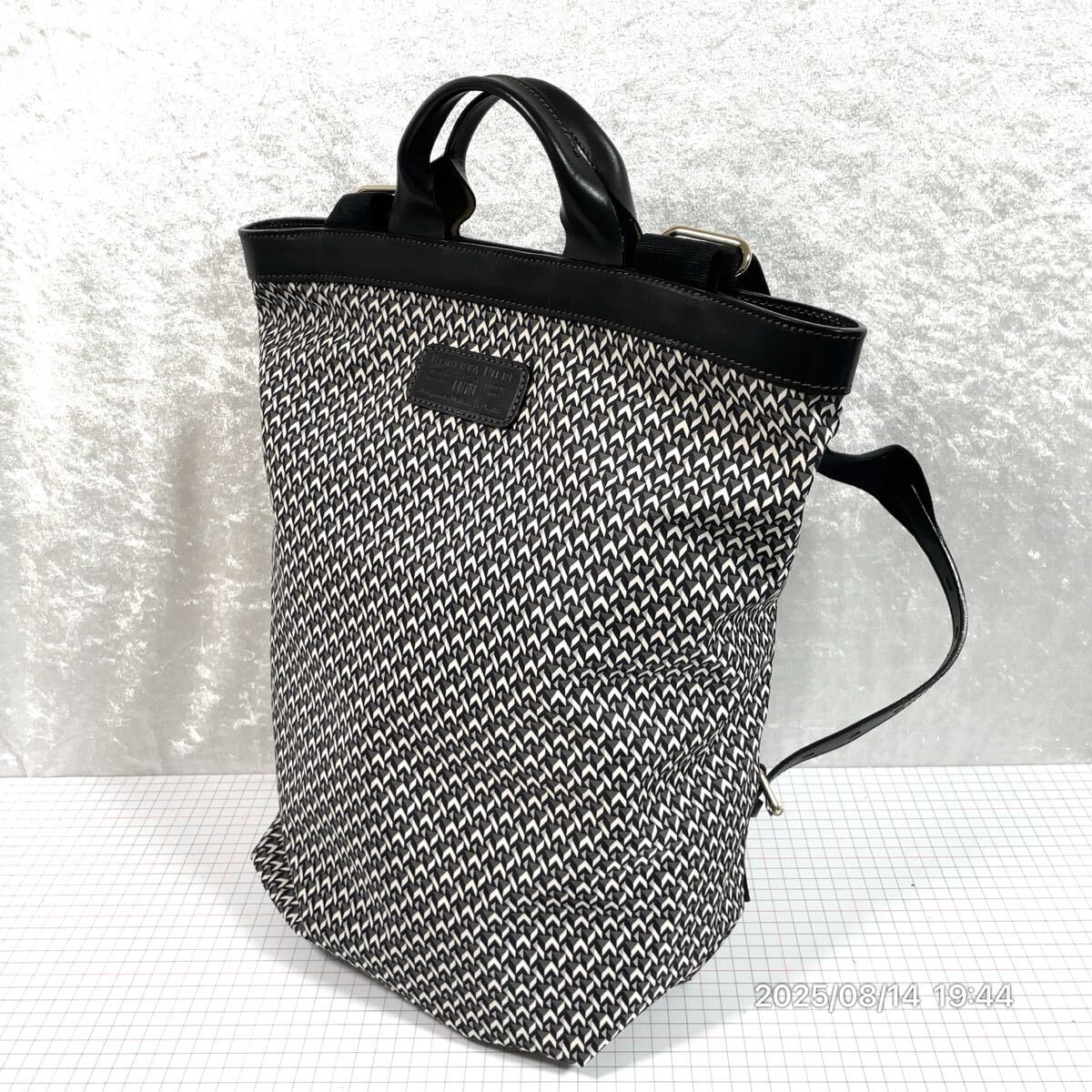 - 美品 ROBERTA PIERI ロベルタピエリ ブランドロゴ 幾何学柄 ブラック系カラー レザー 革 2way ハンドバッグ リュックサック 鞄