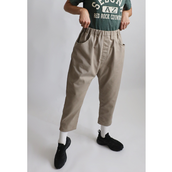 - 最終SALE 90cm コットンチノ生地 股上深いマニッシュ テーパード パンツ ペグ チノパン ベージュU01