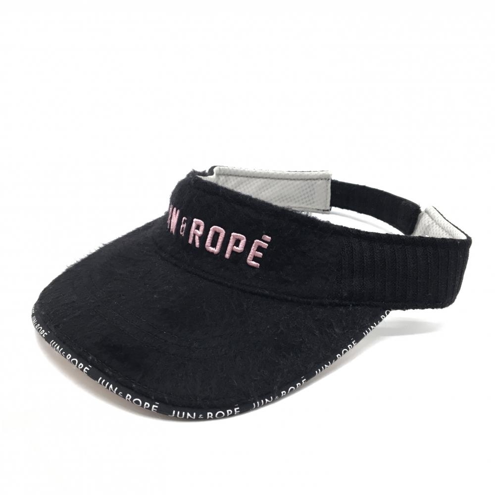 > 【美品】ジュンアンドロペ ニットサンバイザー 黒×ピンク つば・フロント起毛 ロゴ刺しゅう ゴルフウェア JUN&ROPE