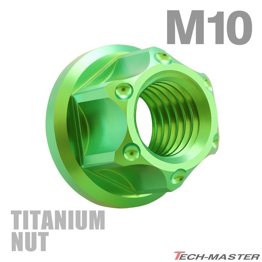 > M10 P1.25 64チタン合金 六角ナット フランジ付き セレート無し グリーン 車/バイク パーツ 1個 JA1150