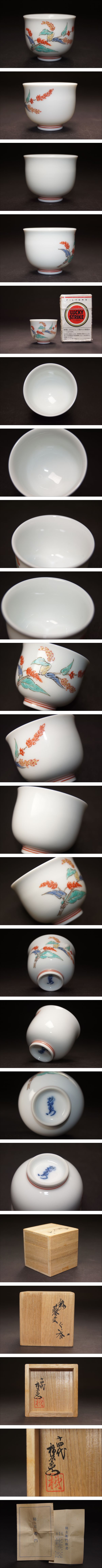 > 真贋保証■人間国宝 十四代 酒井田柿右衛門 作■ 錦 蓼文 ぐい呑 共箱・栞付 酒杯 盃 酒器 酒盃 お猪口 色絵 検:日本酒 酒肴 懐石 料亭