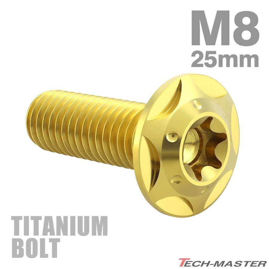 - M8×25mm P1.25 64チタン合金 トルクス穴 フランジ付き ボタンボルト ゴールドカラー JA1049