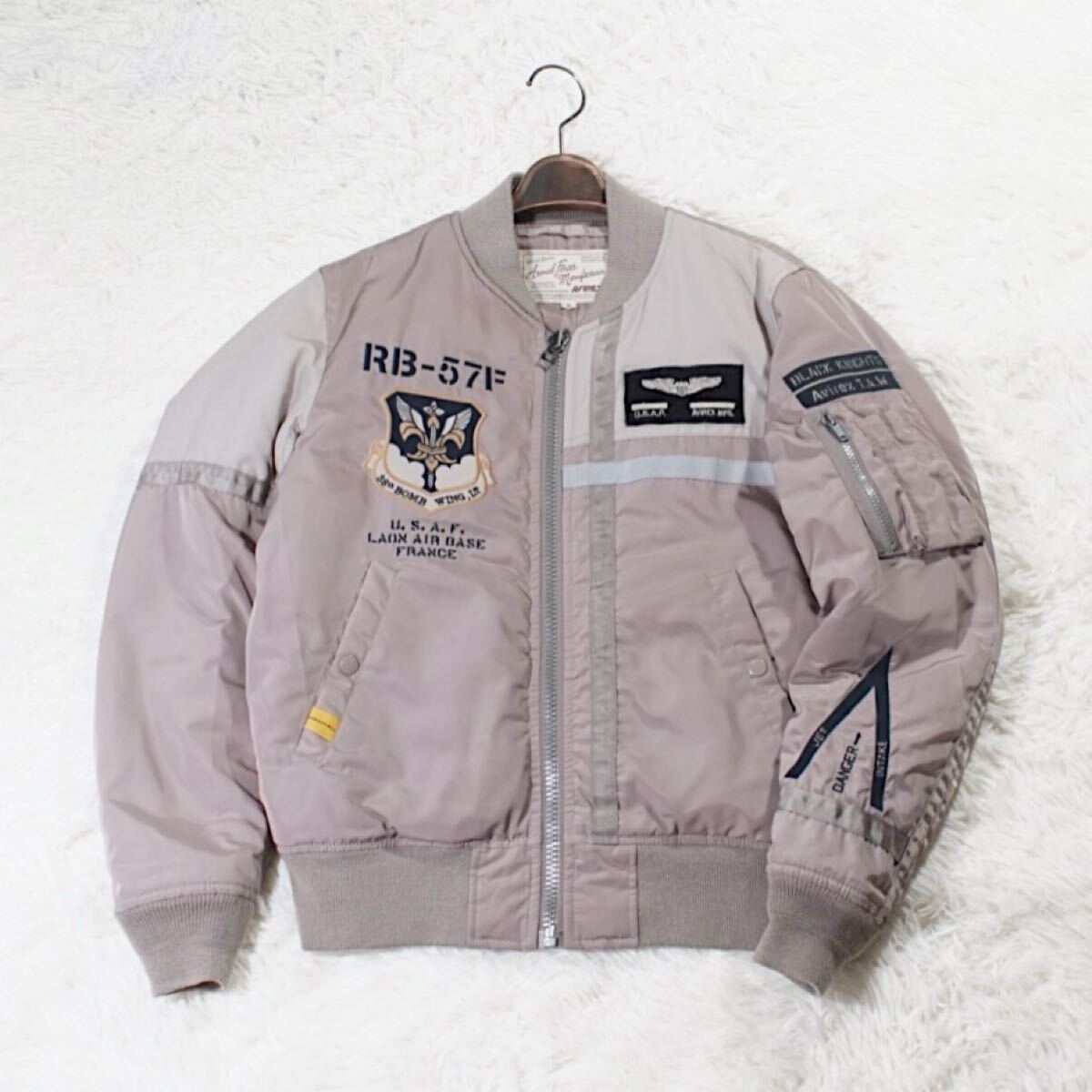 - 希少 大人気《AVIREX》MA-1(M)ベージュ BLACK KNIGHTS 6152158 フライトジャケット アヴィレックス