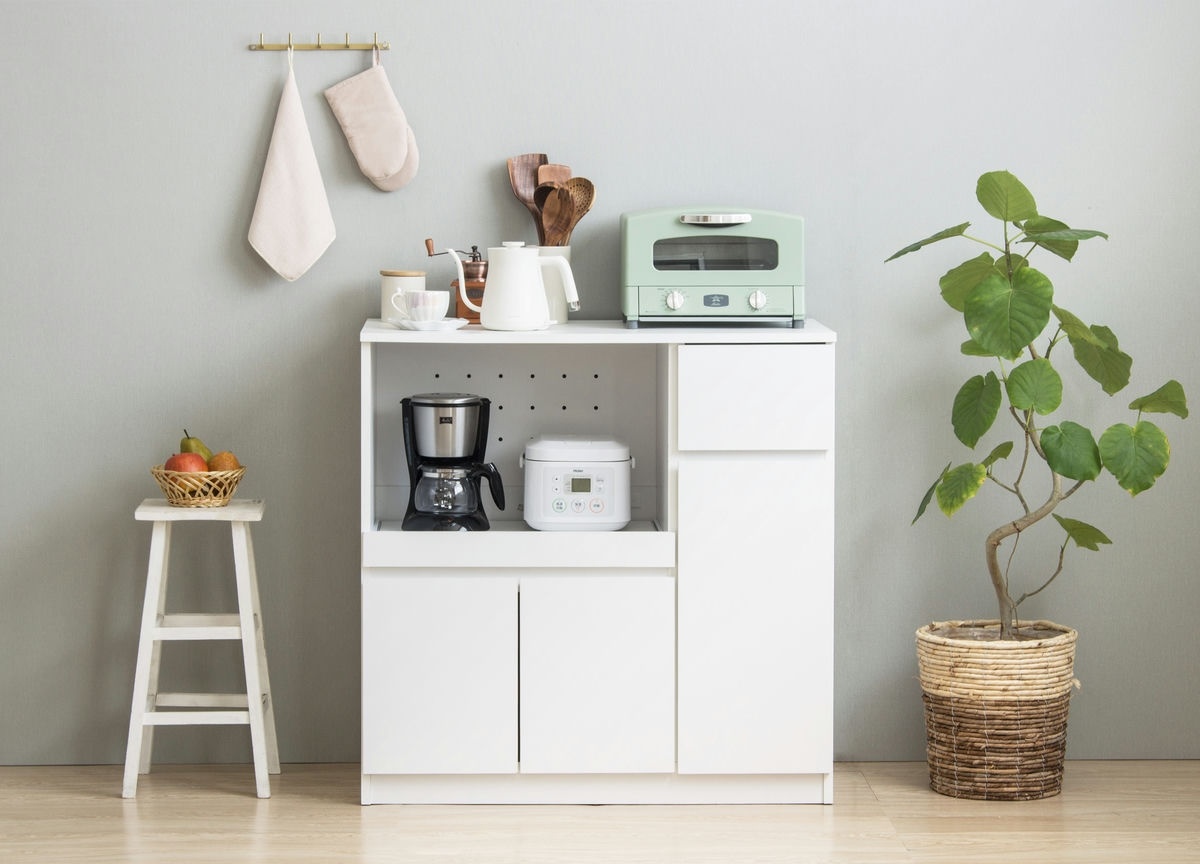 - カウンター キッチンカウンター レンジ台 ホワイト 幅90 キッチンワゴン 組立品