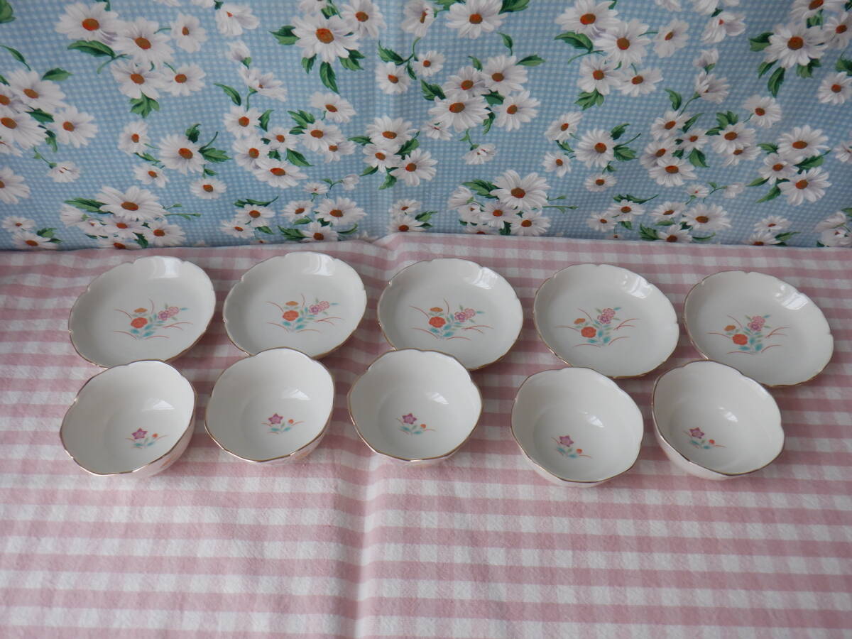 - E9『有田焼 西山窯 御陶器 花ことば 金彩 小花柄の珍味揃(小皿5個&小鉢5個)セット』~箱付き 和食器