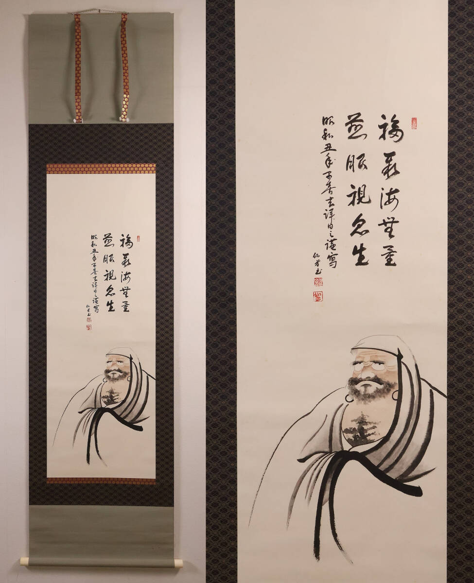 - 【模写】日本画 達磨画賛 仙芳銘 紙本 掛け軸 達磨大師 MA837