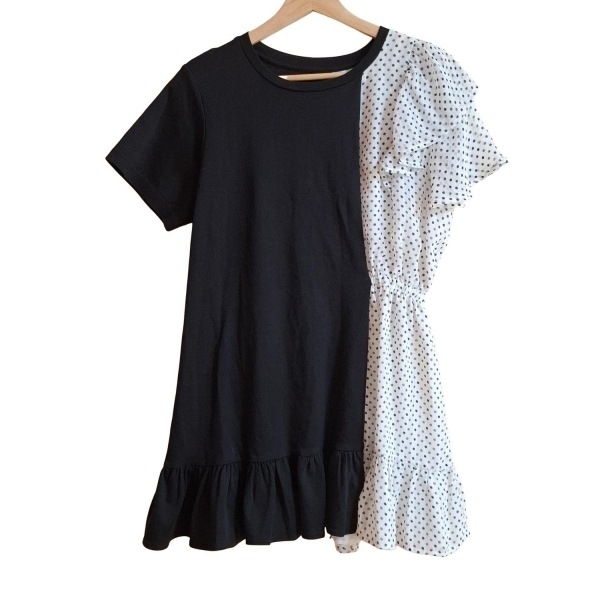 - チェスティ Chesty サイズF - 黒×白 レディース 半袖/ミニ/フリル/ドット柄 ワンピース