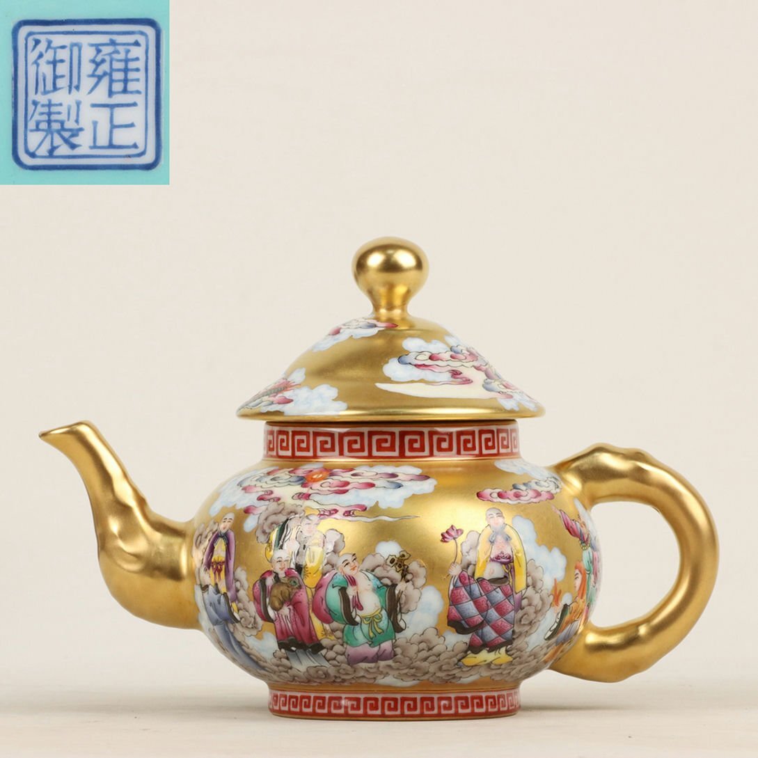 - ◆羽彰・古美術◆Y0726清雍正年製 琺瑯彩塗金十八羅漢紋壺・古陶磁器 ・珍品旧蔵・古賞物・時代物