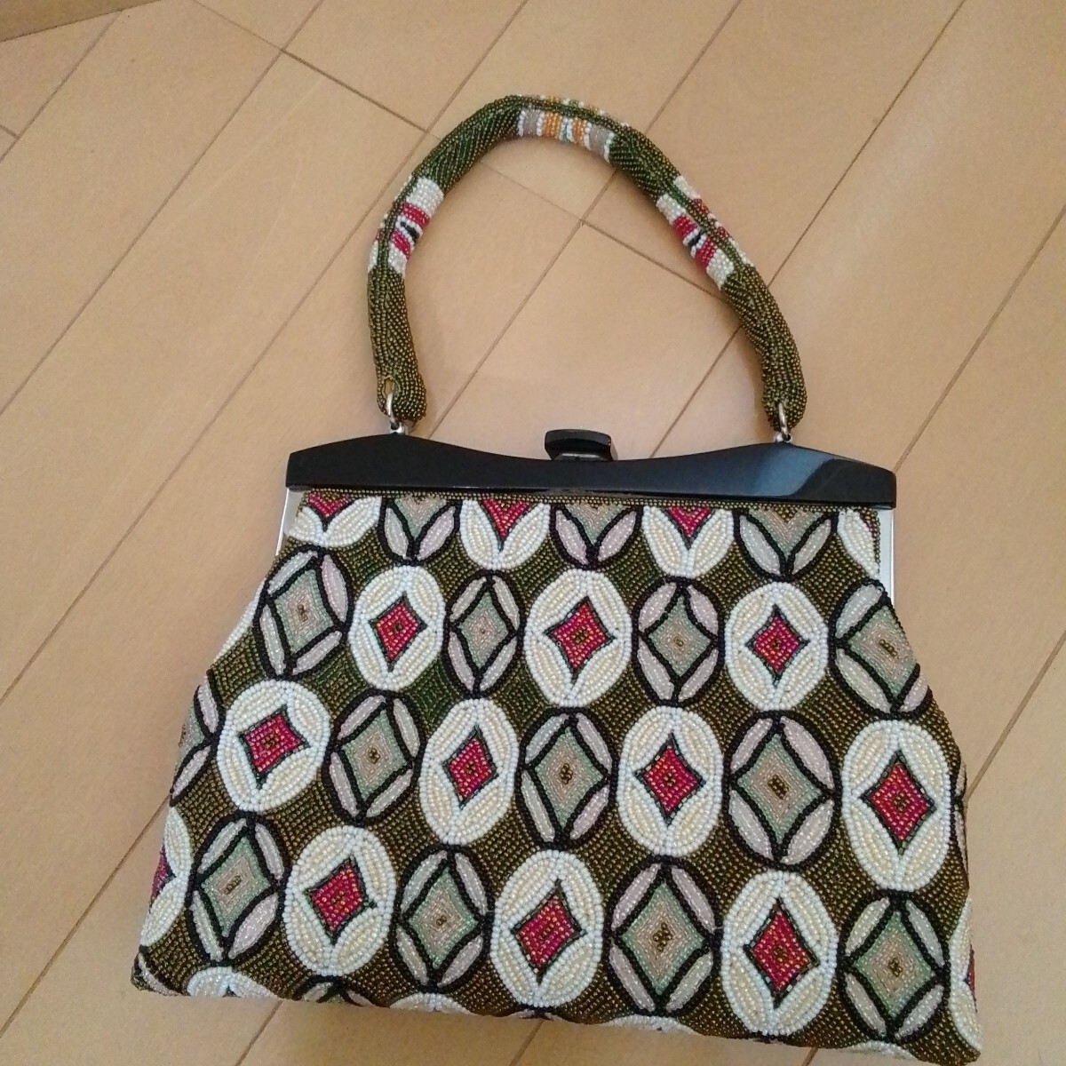 - ビーズバッグ 和装バッグ 和装小物 がま口 ハンドバッグ 昭和レトロ レトロ ヴィンテージ 和装