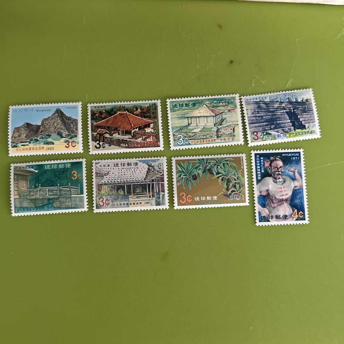 > ★未使用 琉球切手 文化財保護 1963年〜1971年 8種セット 中城城跡 宮良殿内 仲宗根豊見親墓 円覚寺放生橋 弁財天堂 中村家仁王