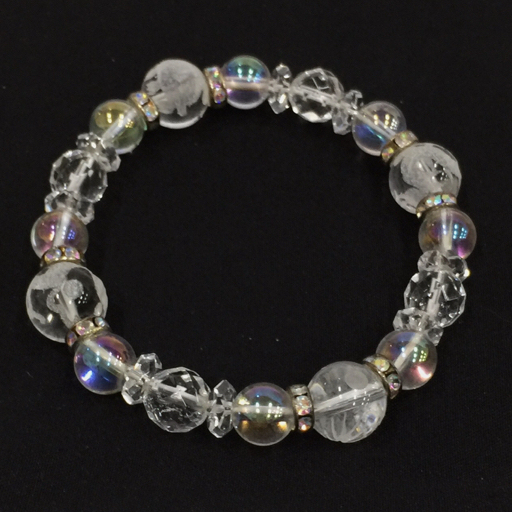 > ブランド不明 ブレスレット ガラス玉 オーロラビーズ ラインストーン アクセサリー ファッション小物 箱付き