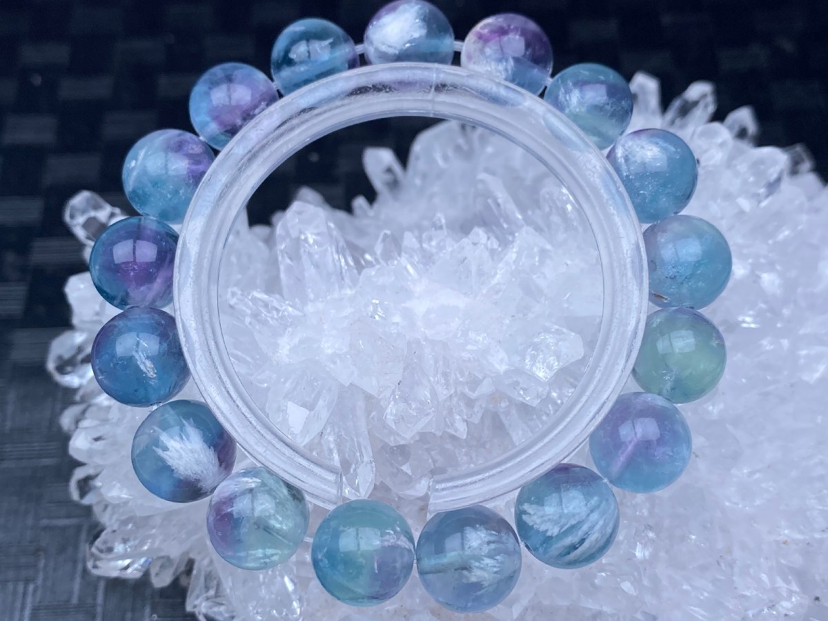 > 即決 0613k125 天然美品★【20Aフェザー・イン・ブルーフローライト】★ブレス 11.5-12mm(新品)