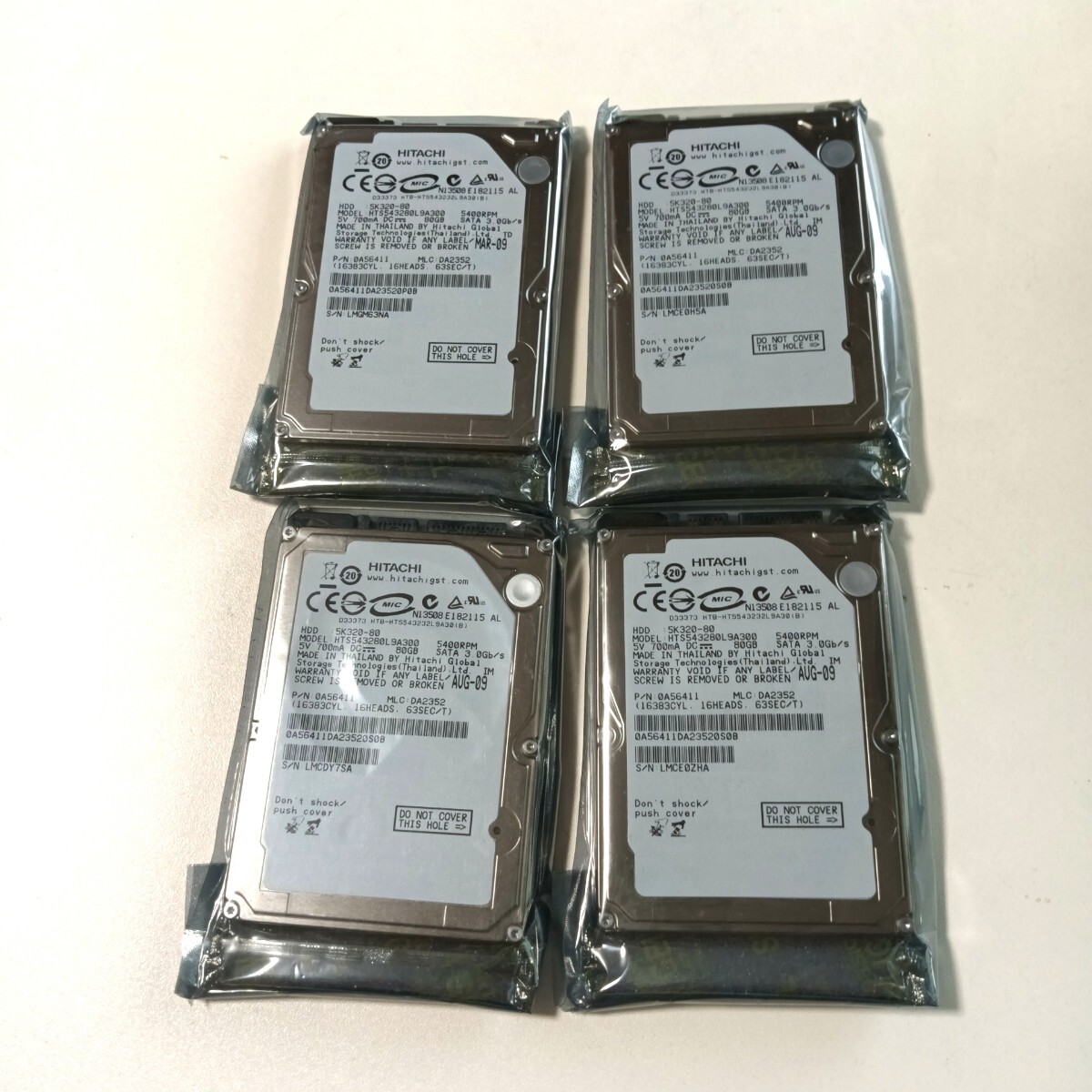 > ★新品★4個セット★送料無料★HDD 80GB SATA Hitachi 5K320-80 5400RPM 8MB キャッシュ 2.5インチ HTS543280L9A300 日立 ハードディスク