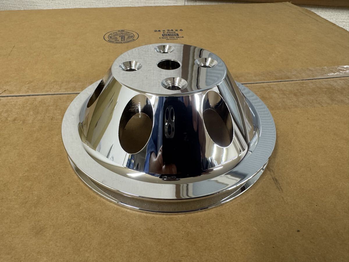 - シボレースモールブロックロングウォーターポンププーリーシングルクローム。インパラ ベルエア カマロ シェベル エルカミーノ C10