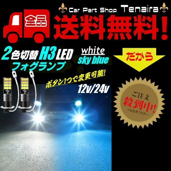 > H3 LED フォグランプ ショートバルブ 2色切替 12V 24V ツインカラー ホワイト アイスブルー 白 青 2個 トラック 自動車 メール便送料無料/7