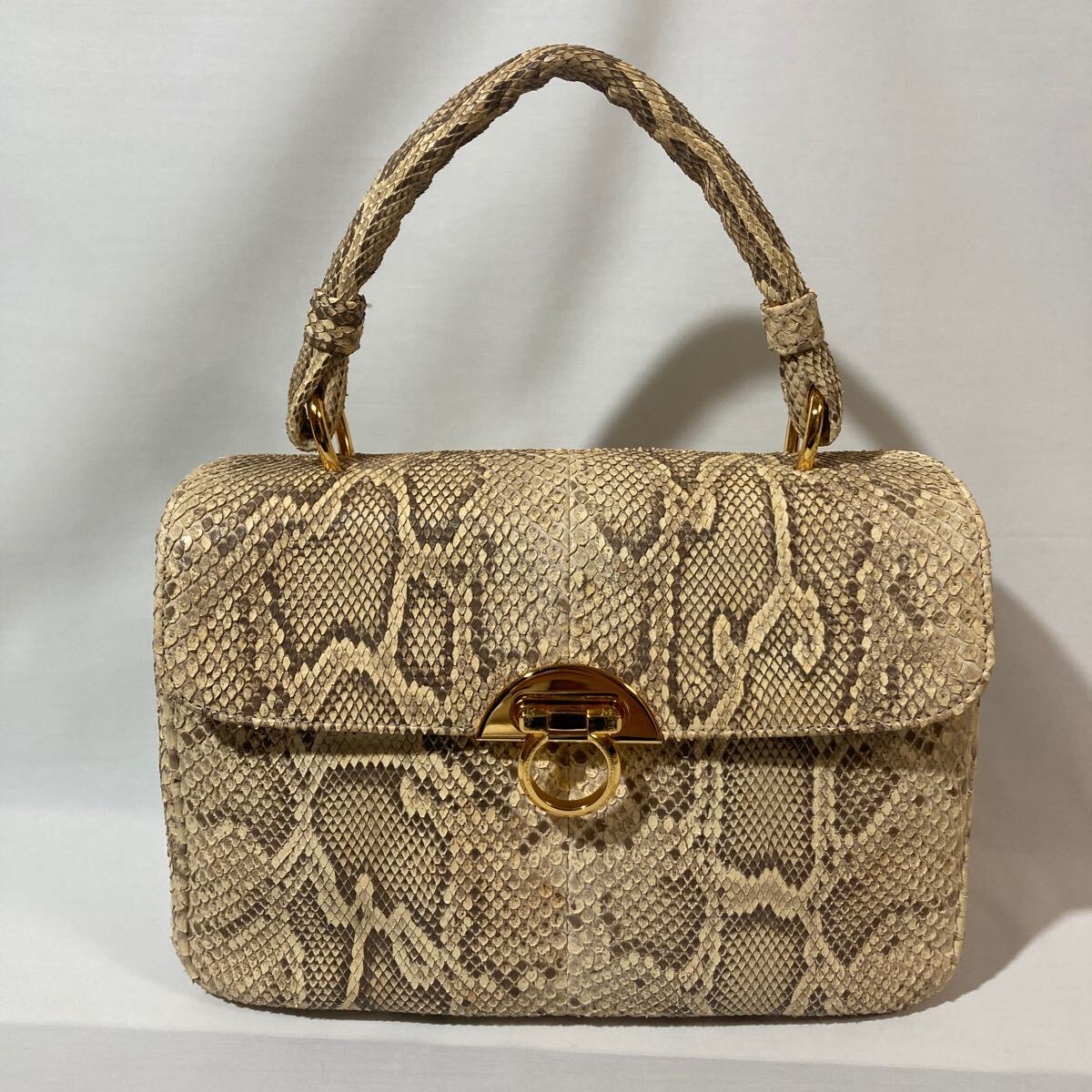 - ダイヤモンドパイソン ハンドバッグ ゴールド金具 エキゾチックレザー