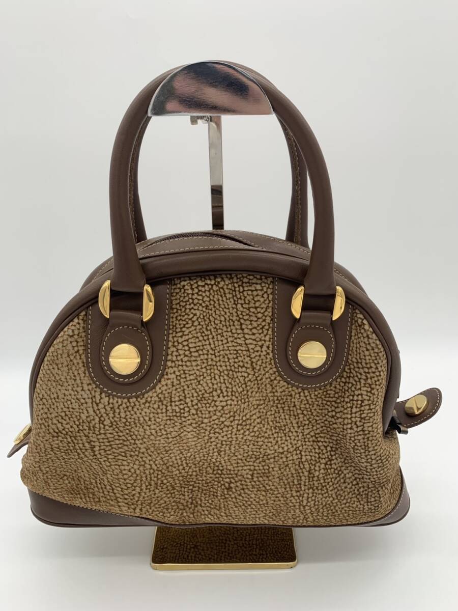 > ボルボネーゼ ハンドバッグ ミニボストン バッグ レディース redwall タグ付き うずら柄 ベージュ スエード×レザー×ゴールド金具