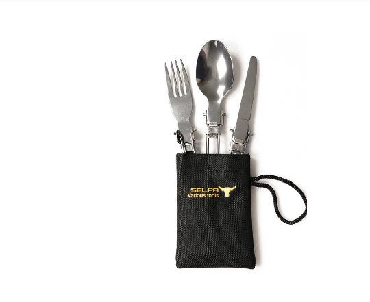 - 送料無料 3点 セット 折りたたみ スプーン ホーク ナイフ ステンレス アウトドア キャンプ 食器 調理 超軽量 収納ポーチ f10