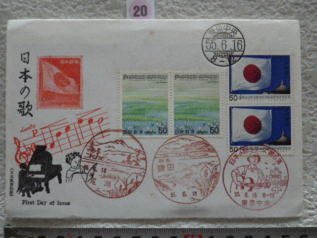 - FDC日本の歌 第6集 1980年 4貼4消 多局・多種印 解説書有 日本風景社版●20●同梱大歓迎