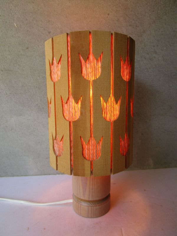 > 北欧 ヴィンテージ スウェーデン 木製 チューリップ柄 パイン材 テーブルランプ 26.5cmH ウェグナー/Le klint/スーホルム/アアルト
