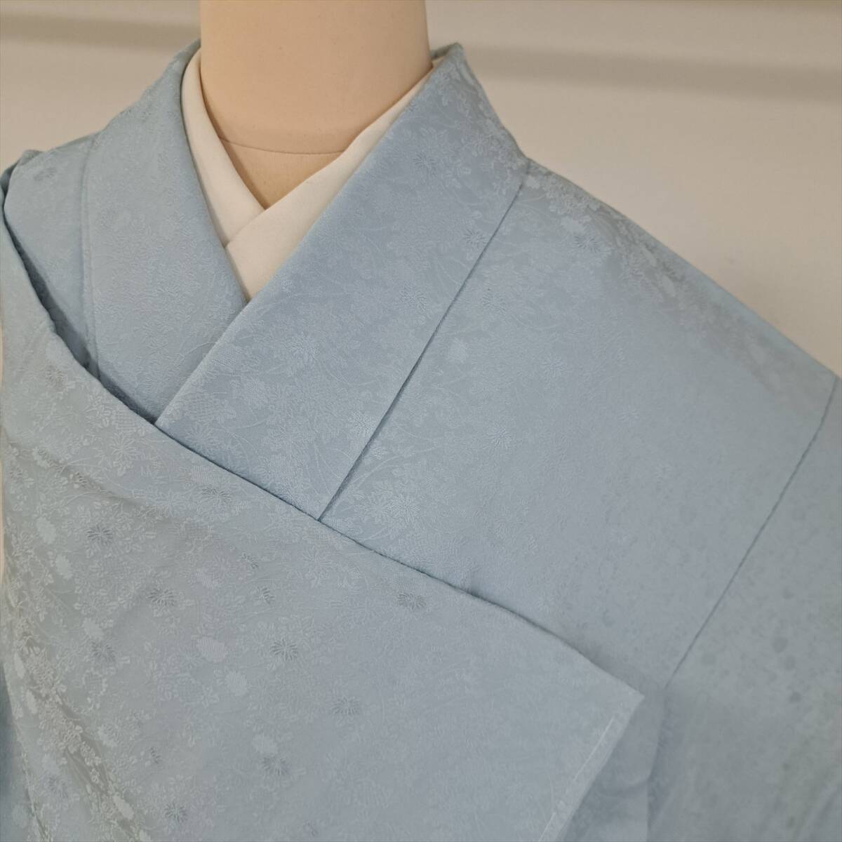 - 即決■着物の越田■裄64.5身丈157 正絹 色無地 訳あり品 一つ紋 地紋 フォーマル パーティー お茶会 ■み29R04