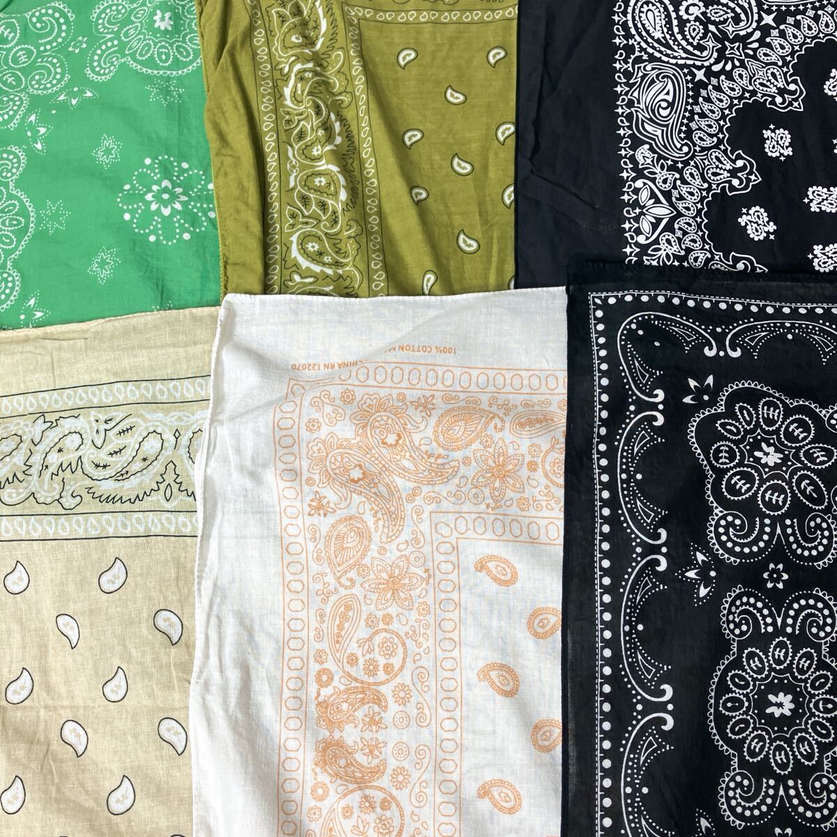 - バンダナ 6枚セット ペイズリー カラーmix 黒ブラック グリーン緑 白ホワイト US古着 小物 アクセント 00s〜格安セット アソート