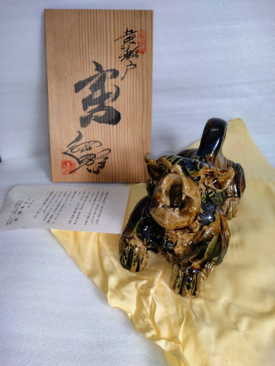 - K372 黄瀬戸 宇助窯 加藤綱助 寅 共布 共箱 インテリア オブジェ 置物